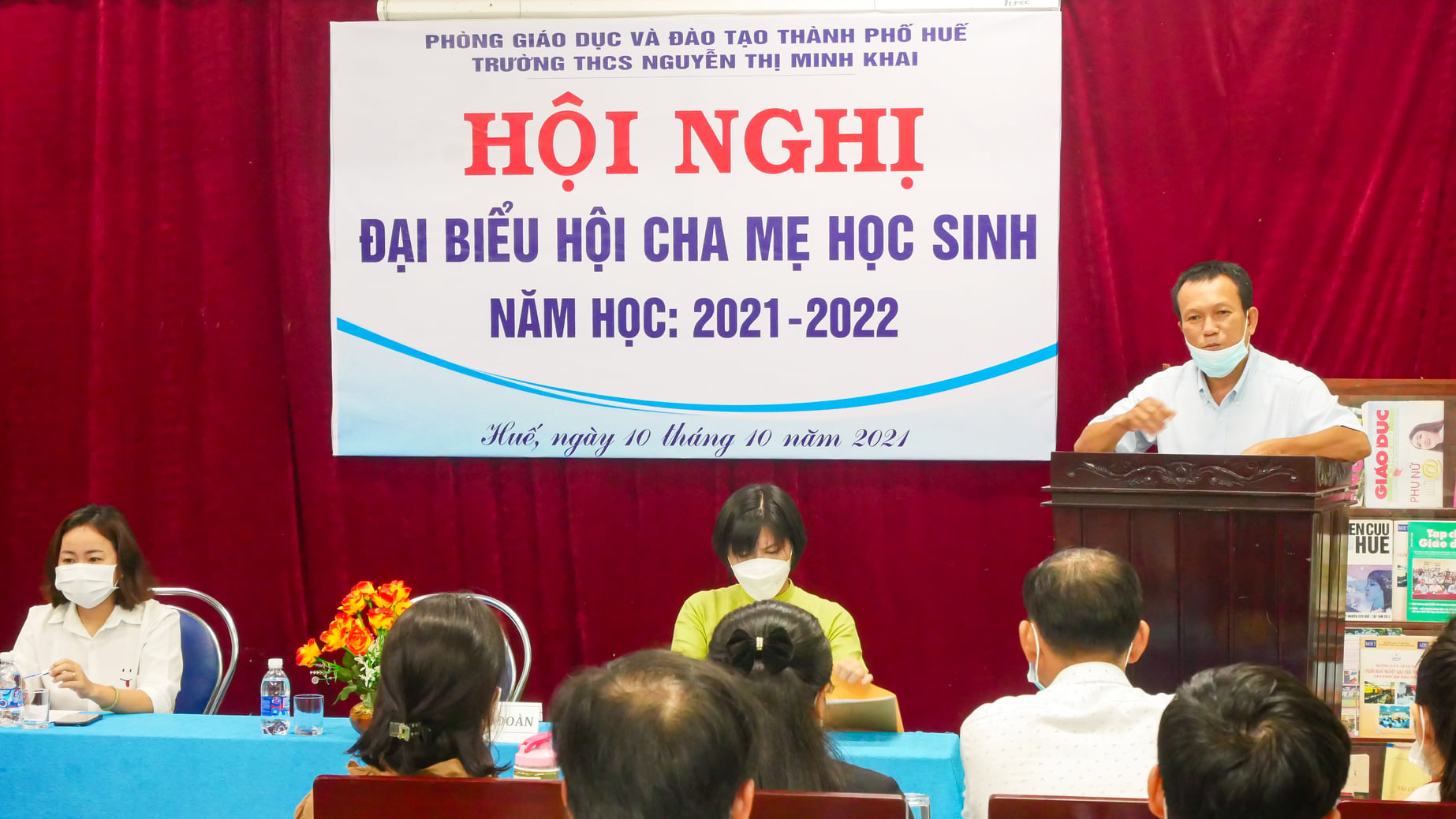 Nhằm tăng cường mối quan hệ phối hợp giữa nhà trường và phụ huynh học sinh trong công tác giáo dục- đào tạo với mục đích nâng cao chất lượng giáo dục của nhà trường, thực hiện thắng lợi nhiệm vụ năm học 2021-2022, 8 giờ sáng 10/10/2021, tại thư viện trường THCS Nguyễn Thị Minh Khai đã tổ chức Hội nghị Đại Biểu Cha Mẹ học sinh năm học 2021-2022.