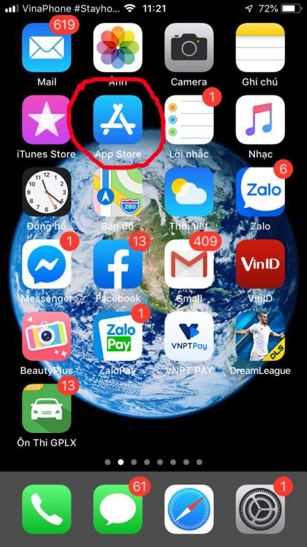 Bước 1: Trên điện thoại chúng ta hãy mở App store (trên iphone hệ điều hành IOS) hoặc CH play (trên điện thoại dùng hệ điều hành Androi).