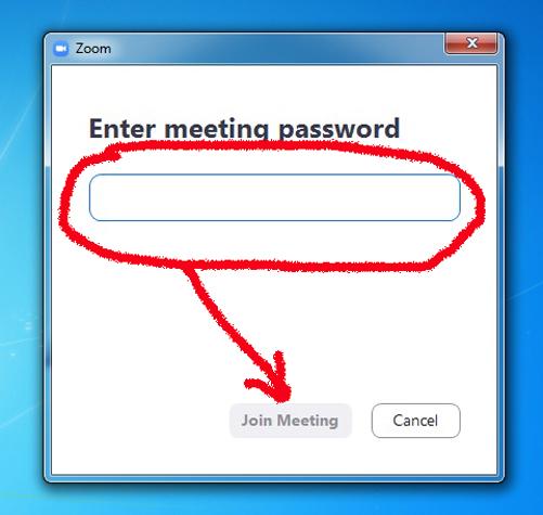Bước 8: Nhập mật khẩu (pass) vào phòng học hay họp. ID và pass nhà trường sẽ gửi cho quý thầy cô và học sinh trước khi học hay họp trực tuyến.