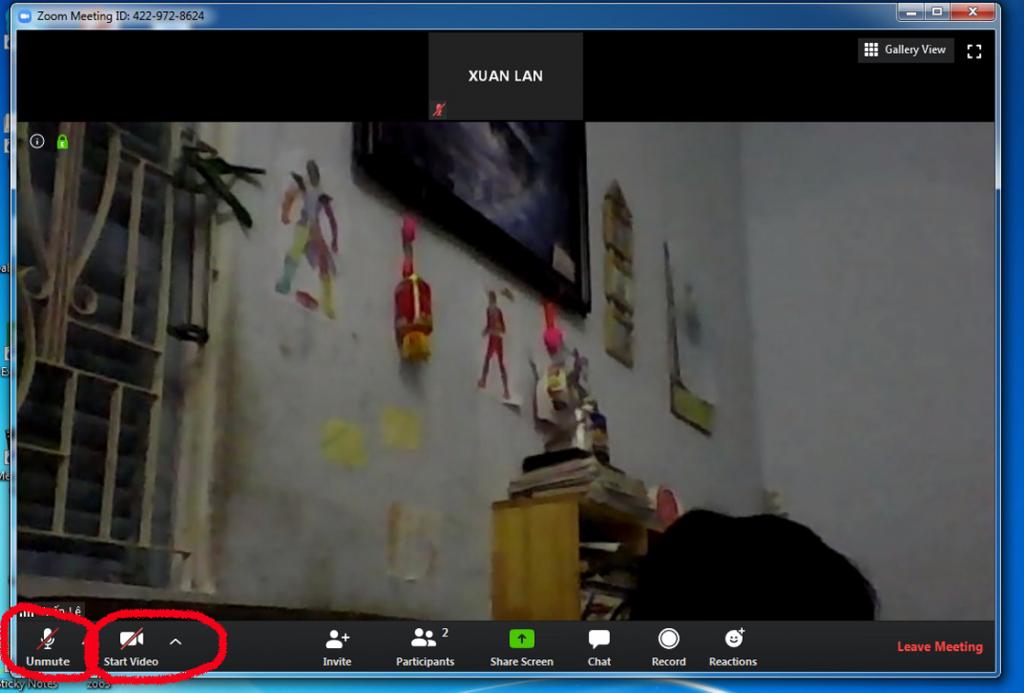 Ở góc trái màng hình có biểu tượng cái mick và máy quay bị gạch chéo màu đỏ, chúng ta click vào hai biểu tượng đó thì sẽ có âm thanh và video.