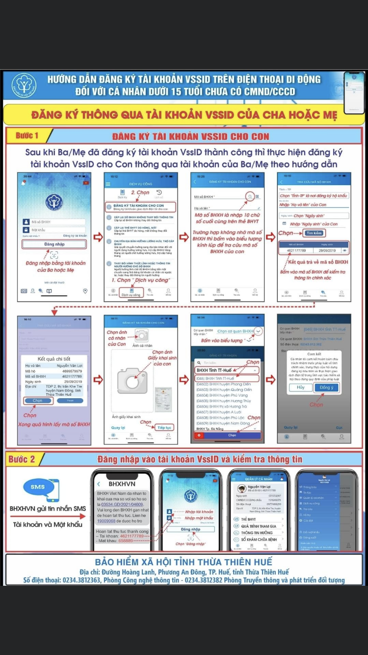 Phụ huynh cài đặt VssID đăng ký tài khoản cho con theo các bước hướng dẫn.
