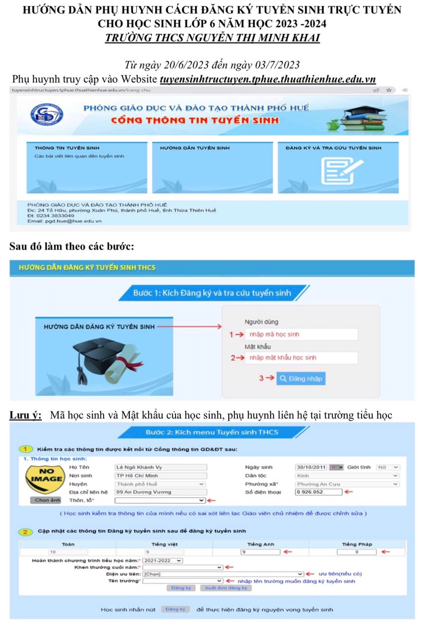 HƯỚNG DẪN PHỤ HUYNH ĐĂNG KÍ TUYỂN SINH TRỰC TUYẾN CHO HS LỚP 6 NĂM HỌC 2023-2024