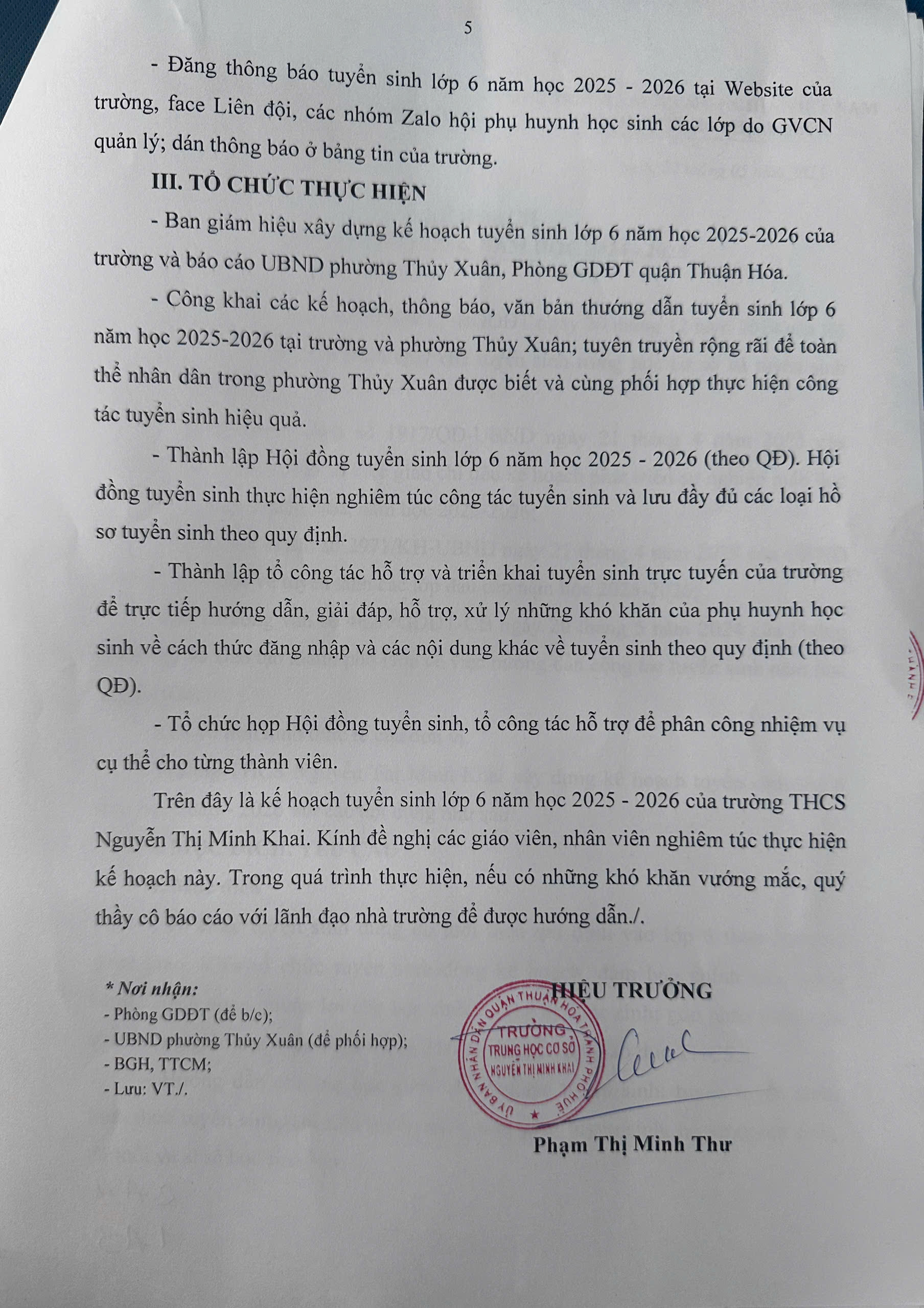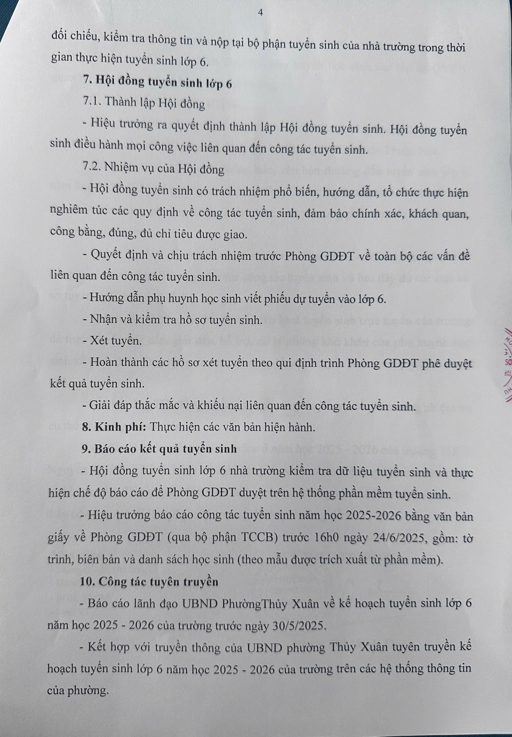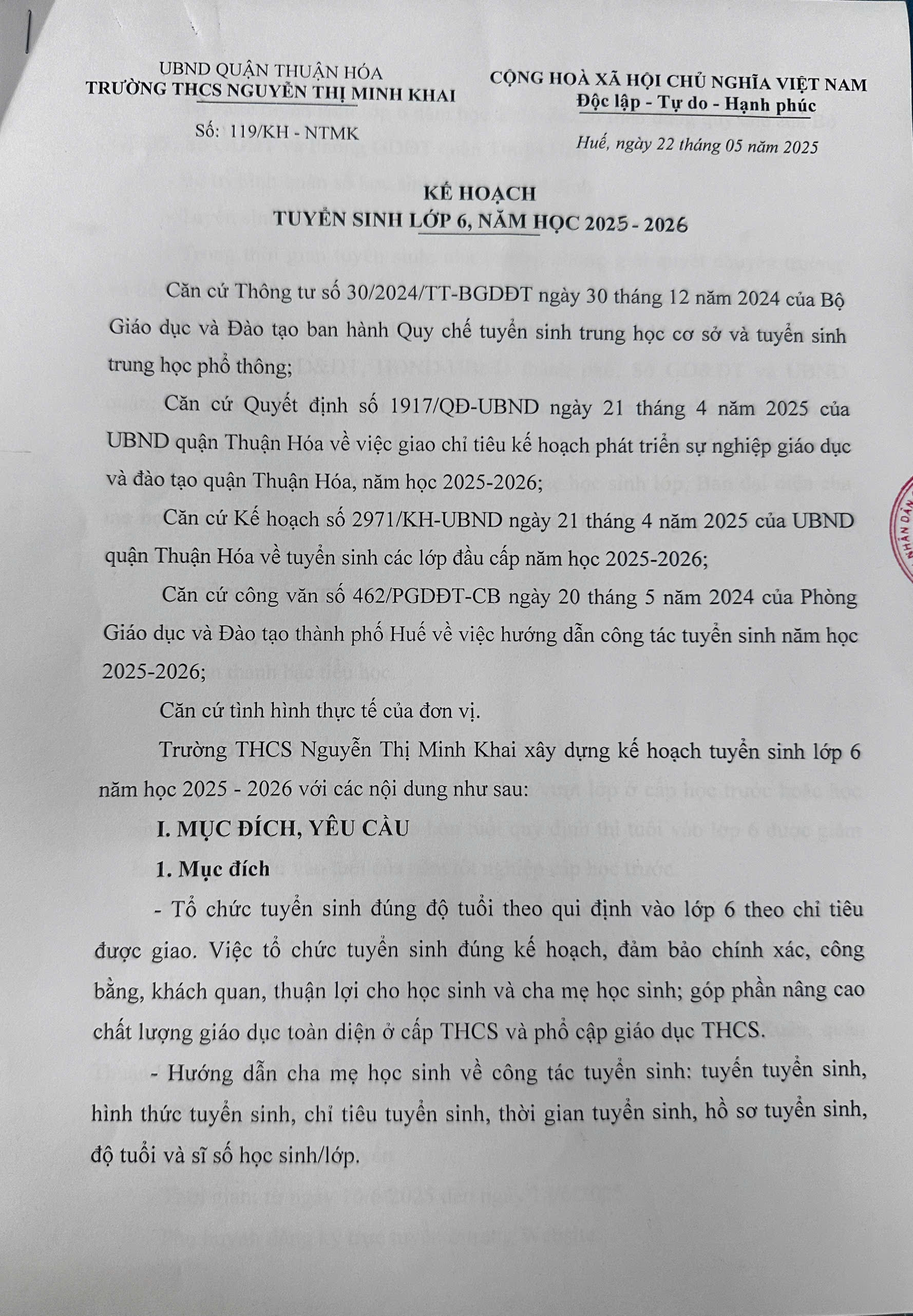 Kế hoạch tuyển sinh lớp 6 năm học 2025-2026
