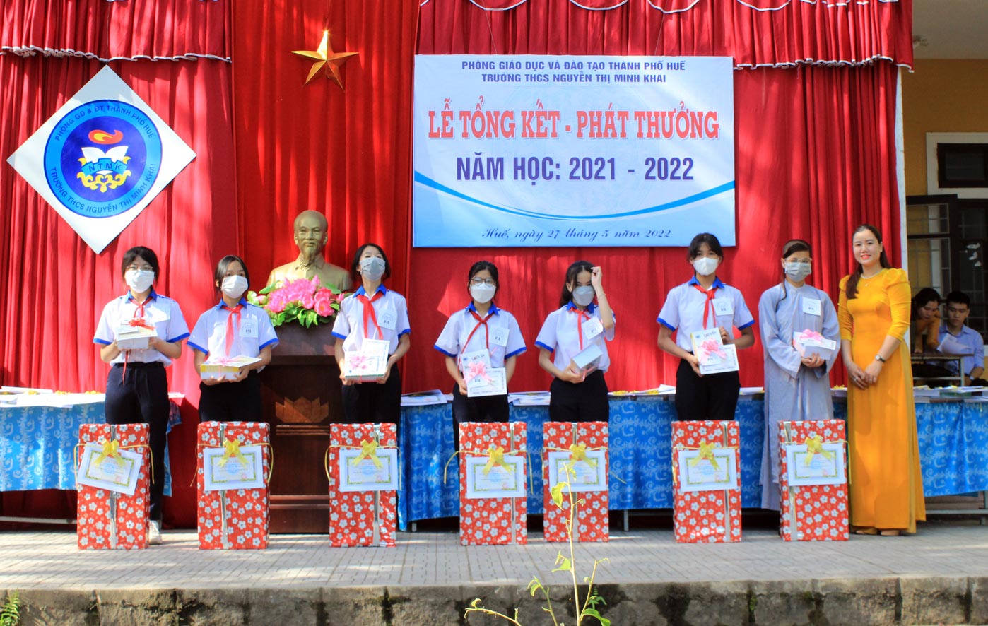- Năm học 2021 - 2022 của thầy và trò trường THCS Nguyễn Thị Minh Khai là năm học có nhiều biến động do ảnh hưởng của đại dịch Covid -19. Tuy nhiên, được sự quan tâm của phòng Giáo dục và Đào tạo thành phố Huế; sự lãnh đạo của Đảng ủy, chính quyền địa phương; sự phối hợp với các ban ngành đoàn thể của địa phương; sự chỉ đạo điều hành sáng suốt của lãnh đạo nhà trường; sự quan tâm động viên của phụ huynh học sinh; đặc biệt là sự nhiệt tình, tâm huyết, trách nhiệm và quyết tâm cao của các thầy cô giáo cùng với sự nỗ lực của các em học sinh, nhà trường đã hoàn thành xuất sắc kế hoạch năm học đề ra đầu năm.