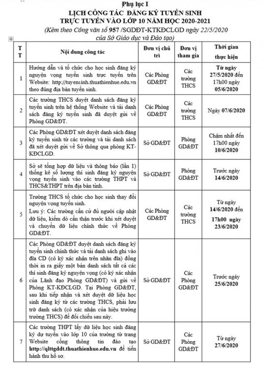 LỊCH CÔNG TÁC ĐĂNG KÝ TUYỂN SINH TRỰC TUYẾN VÀO LỚP 10 NĂM HỌC 2020-2021