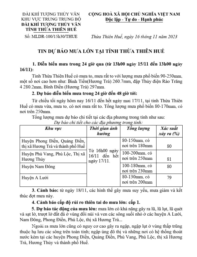 Do tình hình mưa lũ còn diễn biến phức tạp, ngày mai 17/11/2023 tất cả học sinh toàn trường nghỉ học !