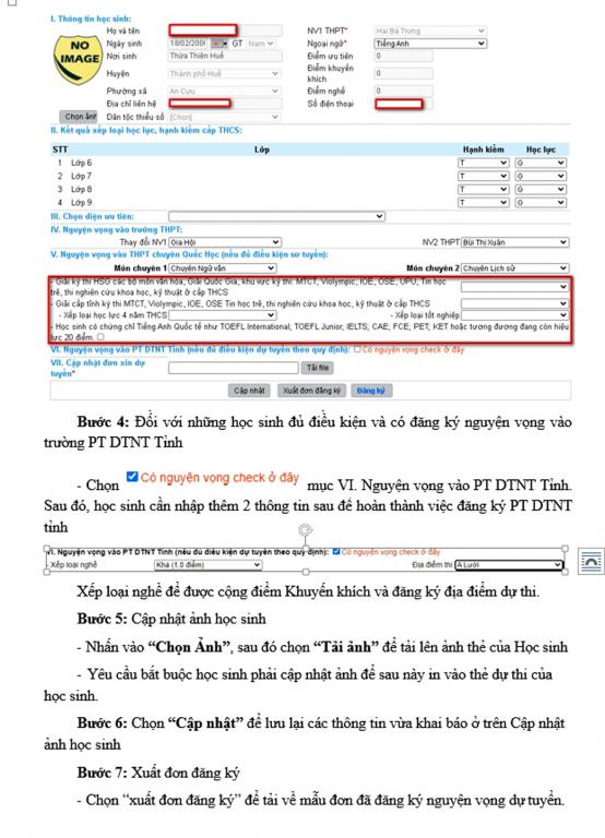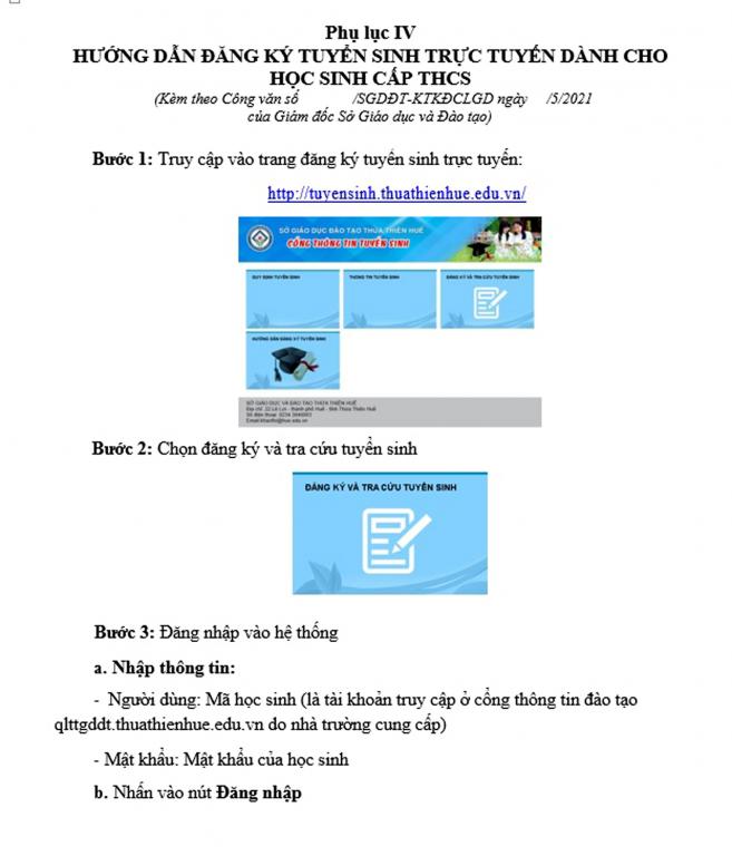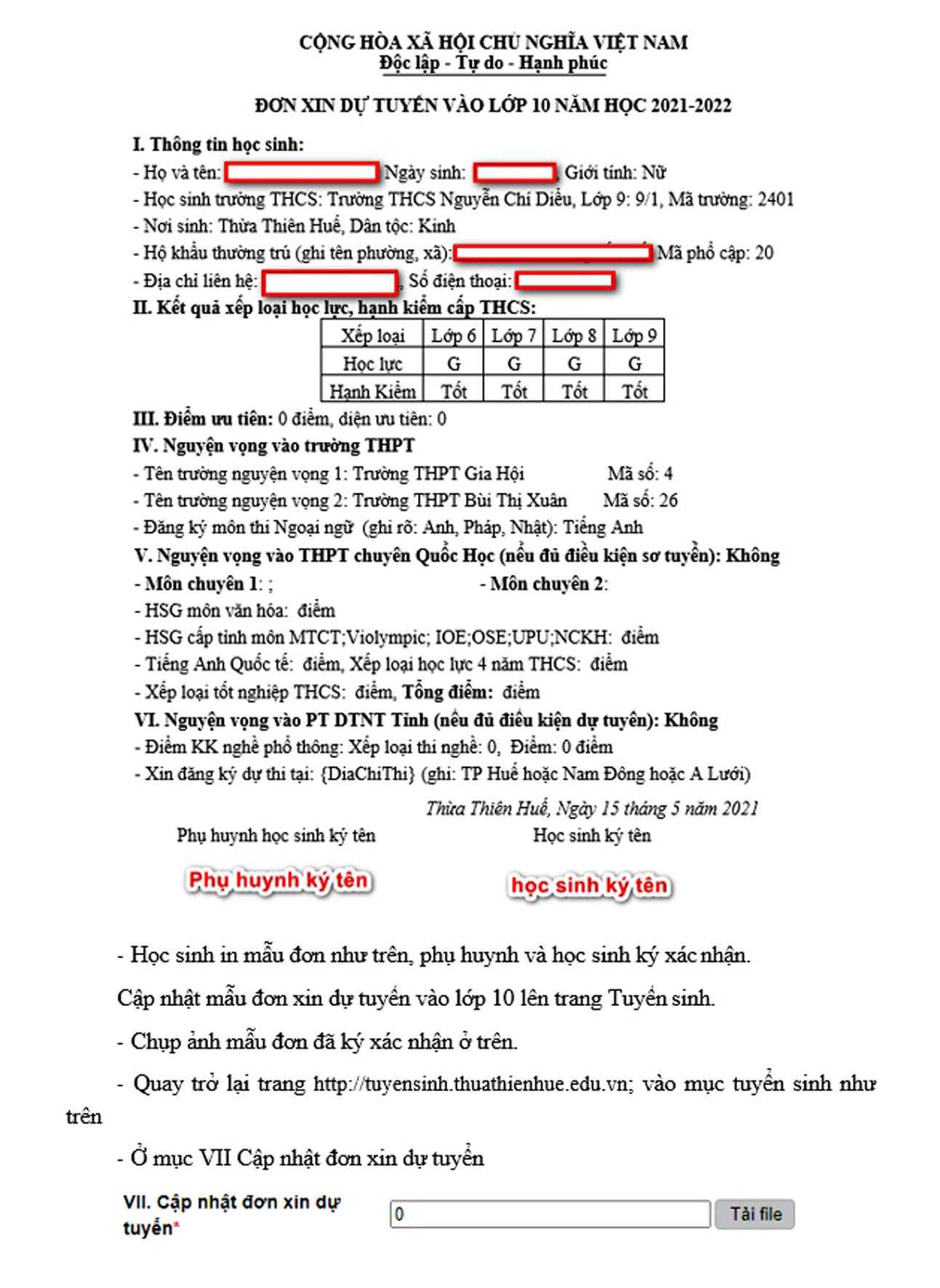 Những học sinh không đăng ký dự thi vào các trường THPT công lập trên địa bàn thành phố Huế , phụ huynh có thể đến trường rút hồ sơ từ ngày 21/5/2021. Để nghị phụ huynh thực hiện nghiêm túc các biện pháp phòng chống dịch COVID-19.