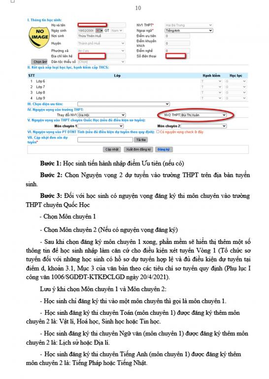 Các em học sinh khối 9 thực hiện đăng ký nguyện vọng 2 và thi vào trường Quốc Học theo hướng dẫn. Thời gian đăng ký từ ngày 22/5 đến 17h0 ngày 26/5/2021.